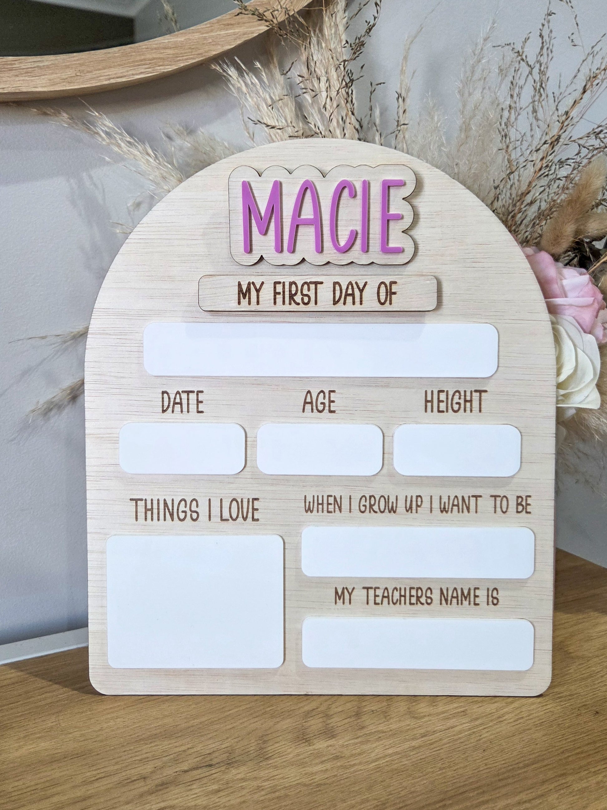 Want a first day board with all the details? Look no further! Our personalised first day boards capture everything that makes the day special — from your child’s name and age to their favourite things and big dreams. A beautiful keepsake to celebrate milestones and create memories you’ll treasure year after year.
